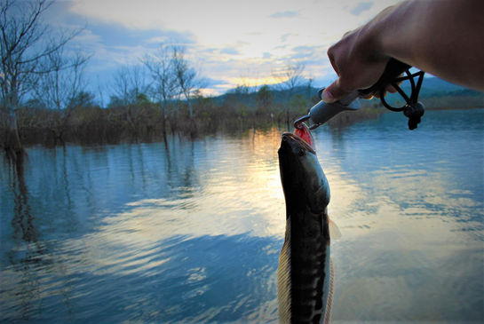 Giant Snakehead fishing in Dam lake (Khaoleam Dam in Kanchanaburi Province)
